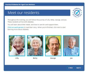 Diabetes is the fastest growing chronic condition in Australia, and around 1 in 4 people living in residential aged care facilities have diabetes. For older people, helping them maintain the best quality of life is one of the main principles of diabetes management and aged care workers play a pivotal role in supporting the person living with diabetes. Effective self–care results in better health related outcomes and quality of life for the person living with diabetes. This training will provide aged care support workers with a basic understanding of diabetes, and how it relates to their work and the situations that arise from their role.
