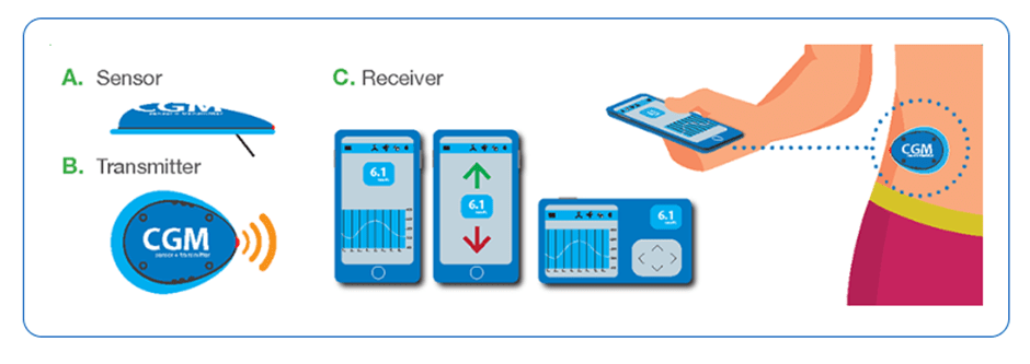 CGM usually consists of 3 parts: